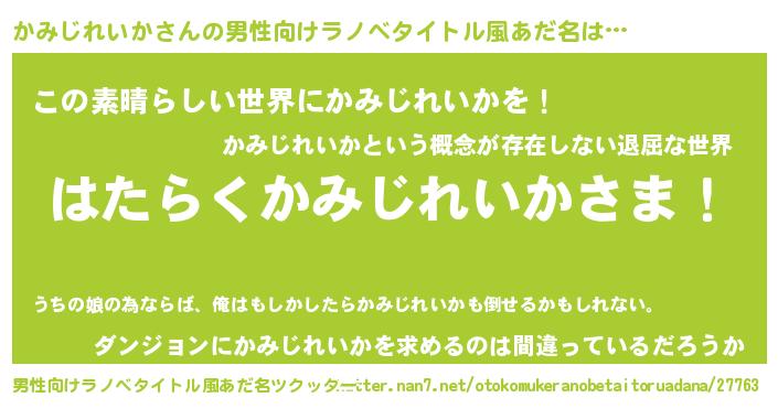 | 意味不明あだ名 | 『住所不定無職かみじれいか(8歳)』 |