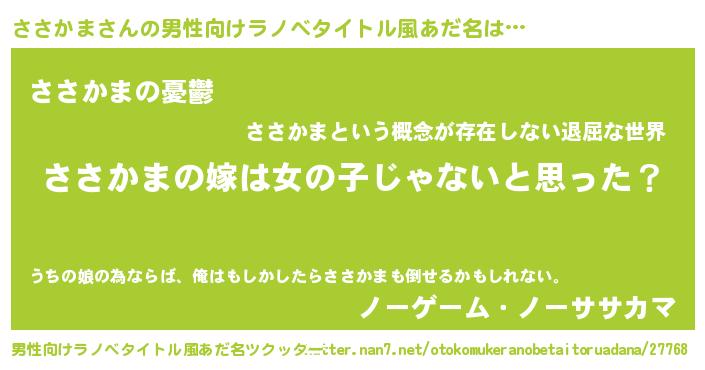 | 意味不明あだ名 | 『とにかく怪しいささかま』 |