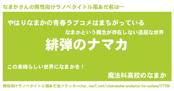 | 意味不明あだ名 | 『なまかフォーエバー』『自称なまか』 |