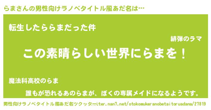 | 女子向けラノベタイトル風あだ名 | 『悪役らまに転生したようですが、知った事ではありません』 |