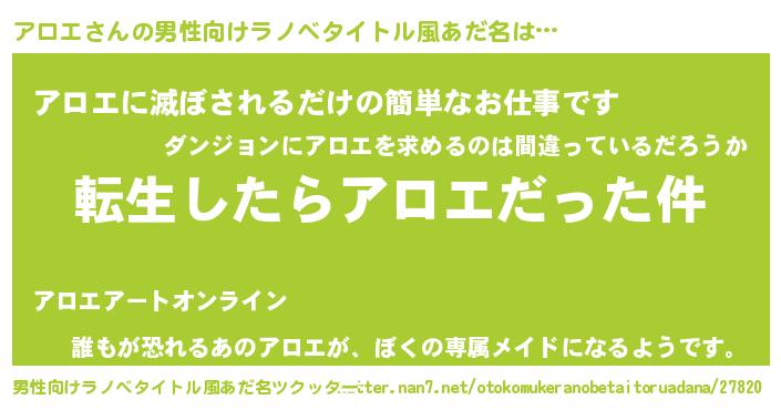 | 女子向けラノベタイトル風あだ名 | 『アロエの玉の輿計画!』 |