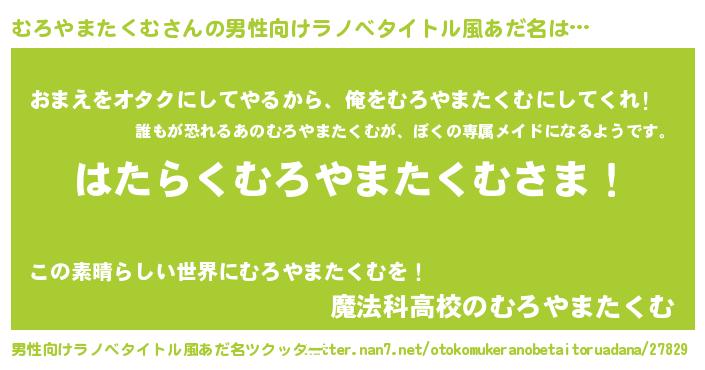 | ヘコむあだ名 | 『むろやまたくむ(笑)』『牛乳』 |