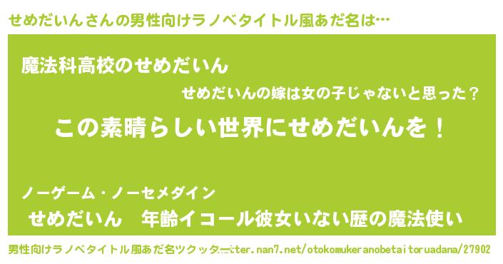 | 意味不明あだ名 | 『住所不定無職せめだいん(5歳)』 |