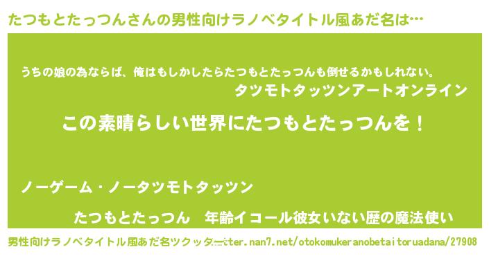 | 意味不明あだ名 | 『住所不定無職たつもとたっつん(62歳)』 |