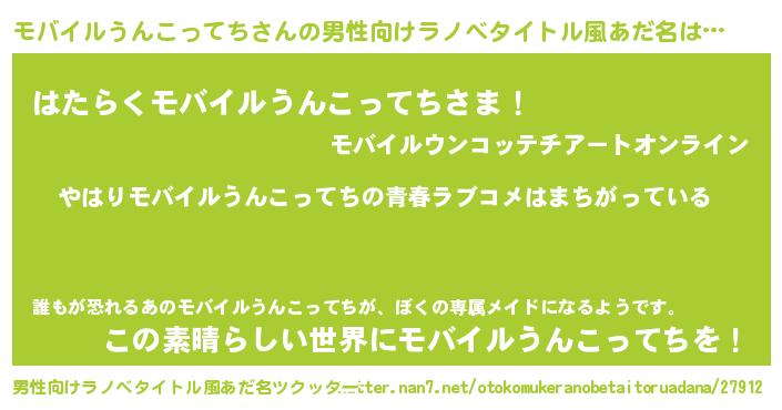 | 女子向けラノベタイトル風あだ名 | 『モバイルうんこってちの雑貨屋さん』 |
