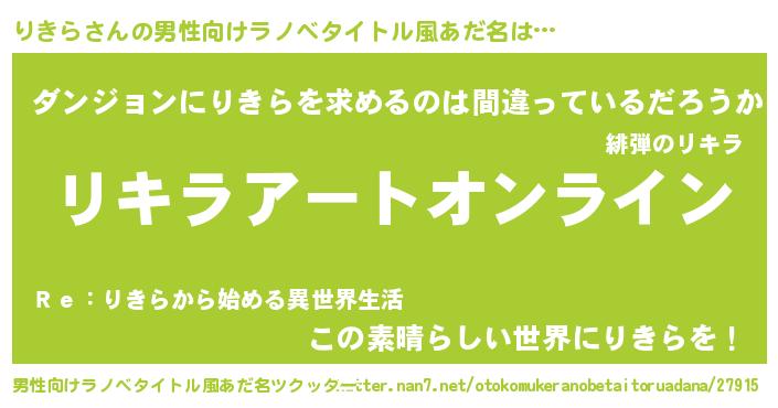| 女子向けラノベタイトル風あだ名 | 『りきら姫と円卓の騎士』『闇のりきら』 |