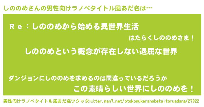 | 女子向けラノベタイトル風あだ名 | 『異世界で失敗しない100のしののめ』 |