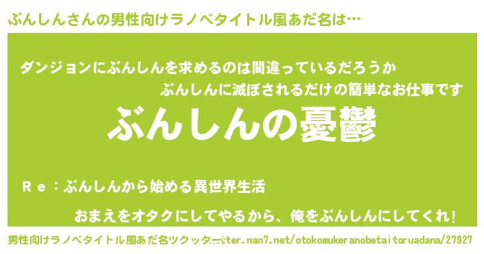 ぶんしんさんの男性向けラノベタイトル風あだ名をツクッター!