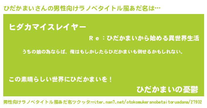 | 胡散臭い通販商品みたいなあだ名 | 『運命の人と巡り会える高級そうな絵画…その名も「ひだかまい」』 |