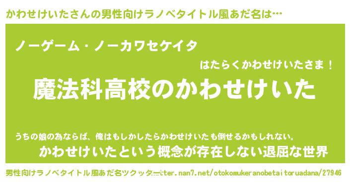 | 女子向けラノベタイトル風あだ名 | 『かわせけいたアンティーク』 |