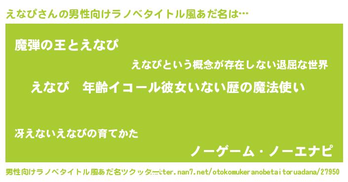 | 胡散臭い通販商品みたいなあだ名 | 『あなたにだけ特別に提供する限定10本のレアな日本酒…その名も「えなぴ」』 |