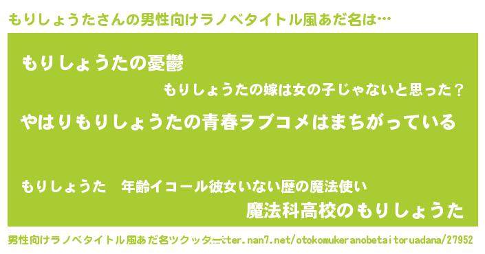 | 女子向けラノベタイトル風あだ名 | 『もりしょうた伯爵の花嫁』 |