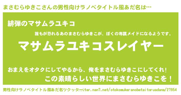 まさむらゆきこさんの男性向けラノベタイトル風あだ名をツクッター!