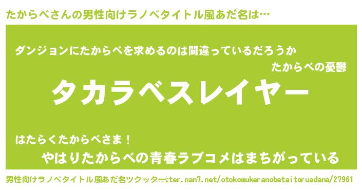 | 胡散臭い通販商品みたいなあだ名 | 『信頼と実績のネックレス…その名も「たからべ」』 |