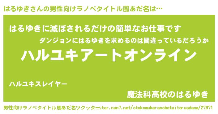 | ヒーロー風カッコイイあだ名 | 『スーパーハルユキ』『最強戦士ハルユキ』 |