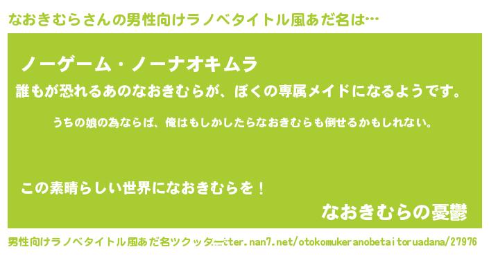 | 女子向けラノベタイトル風あだ名 | 『なおきむら伯爵の花嫁』 |