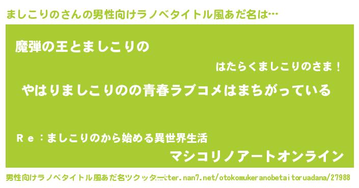 | 女子向けラノベタイトル風あだ名 | 『ましこりのの雑貨屋さん』 |