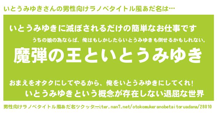 | 意味不明あだ名 | 『住所不定無職いとうみゆき(9歳)』 |