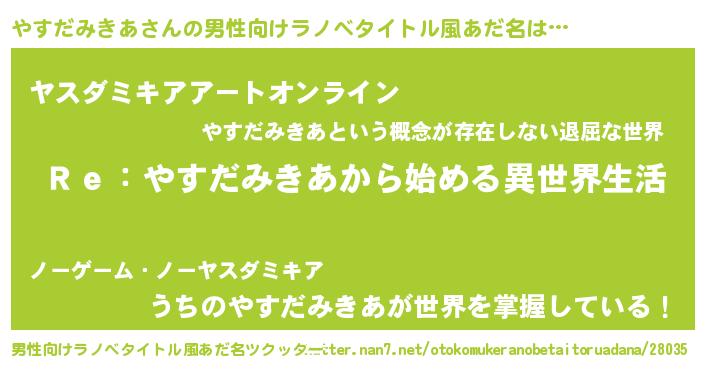 | 意味不明あだ名 | 『自称やすだみきあ』 |