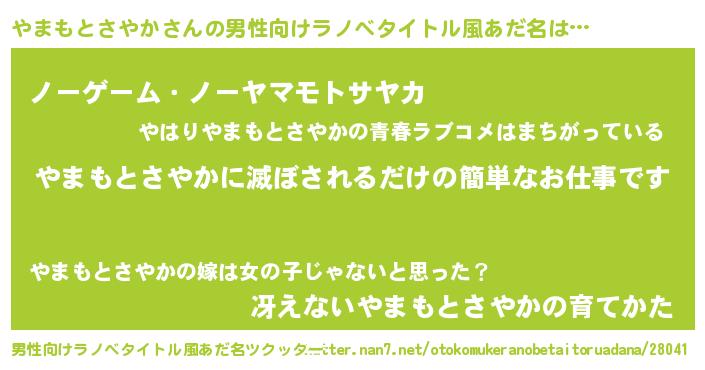 | 女子向けラノベタイトル風あだ名 | 『横柄やまもとさやかと宰相陛下』 |