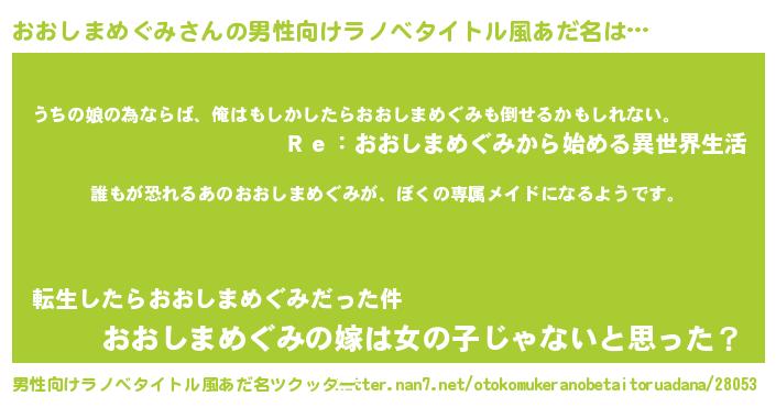| 胡散臭い通販商品みたいなあだ名 | 『来世でも幸せになれる水素水…その名も「おおしまめぐみ」』 |