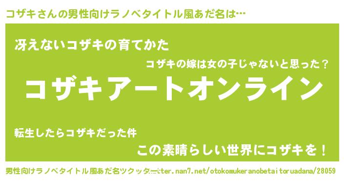 | 女子向けラノベタイトル風あだ名 | 『誰かこのコザキを説明してください! ~契約から始まるウェディング~』 |
