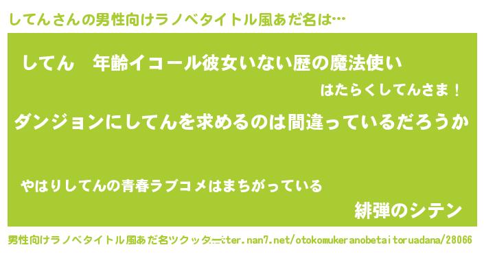 | 女子向けラノベタイトル風あだ名 | 『してんは平凡を望む』 |