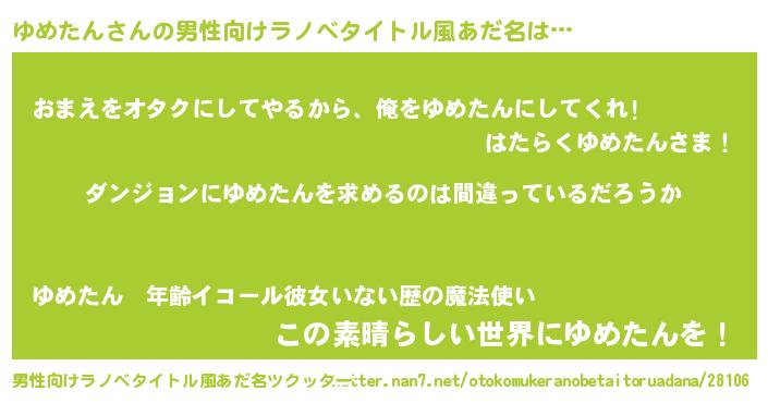 | 女子向けラノベタイトル風あだ名 | 『ゆめたんは平凡を望む』 |