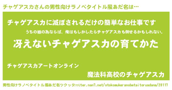 | 女子向けラノベタイトル風あだ名 | 『男装チャゲアスカの憂鬱な任務』 |
