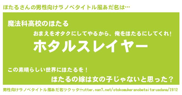 | 胡散臭い通販商品みたいなあだ名 | 『ガンによく効く高麗人参…その名も「ほたる」』 |
