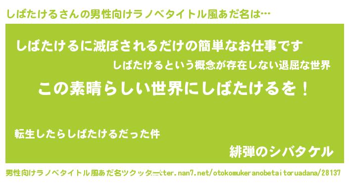 | 女子向けラノベタイトル風あだ名 | 『悪役しばたけるに転生したようですが、知った事ではありません』 |
