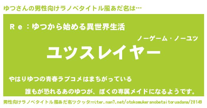 | ヘコむあだ名 | 『ゆつ(苦笑)』『豆乳』『ゆつにー』 |