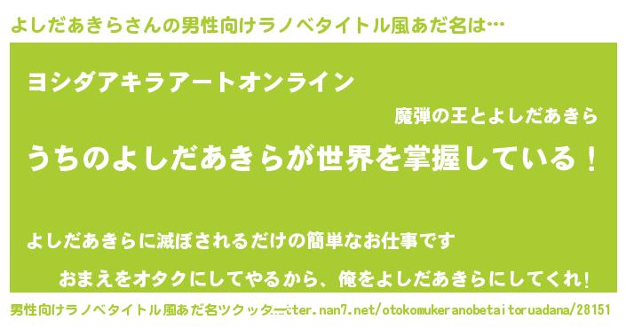 | 胡散臭い通販商品みたいなあだ名 | 『億万長者になれる霊験あらたかなお札…その名も「よしだあきら」』 |