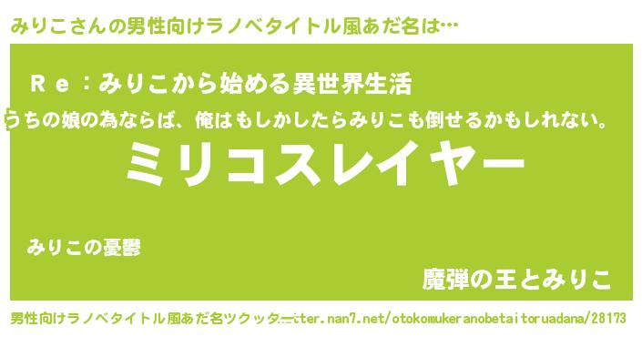 | ヒーロー風カッコイイあだ名 | 『超時空戦士ミリコ』『仮面ミリダー』 |
