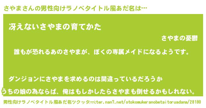 | 女子向けラノベタイトル風あだ名 | 『さやまの契約王妃』『さやまの婚約者』 |