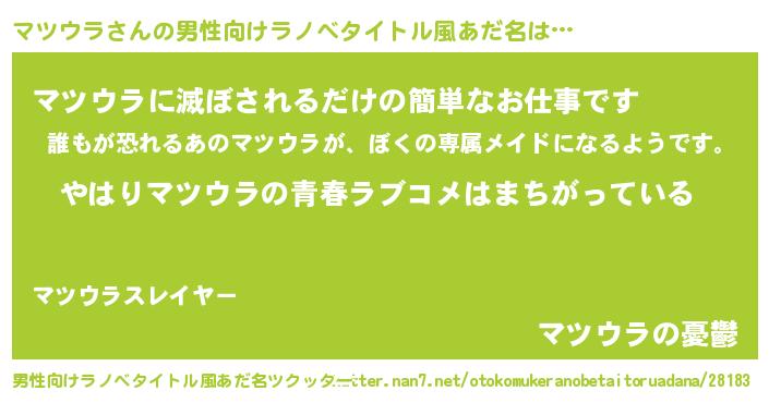 | 女子向けラノベタイトル風あだ名 | 『マツウラの雑貨屋さん』 |