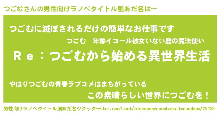 | 意味不明あだ名 | 『自称つごむ』『住所不定無職つごむ(84歳)』 |