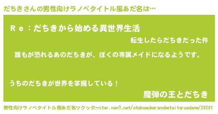 | 意味不明あだ名 | 『永久保存だちき』『自称だちき』 |