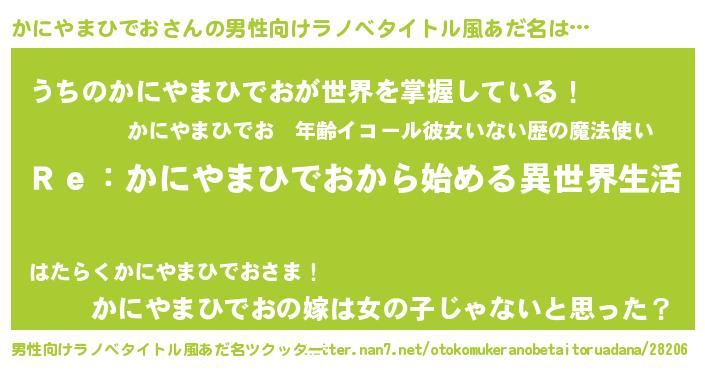 | 女子向けラノベタイトル風あだ名 | 『かにやまひでおストレイドッグス』 |