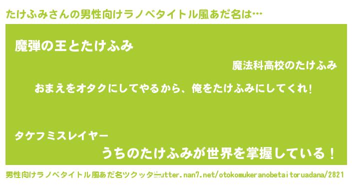 | ヒーロー風カッコイイあだ名 | 『愛の使者たけふみ』『仮面タケダー』 |
