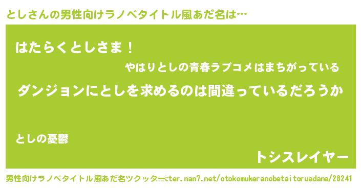 | 女子向けラノベタイトル風あだ名 | 『としの卵を拾いまして』 |