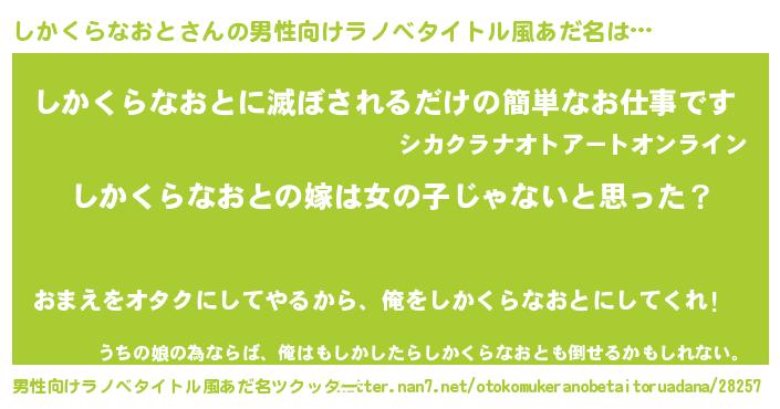 | 女子向けラノベタイトル風あだ名 | 『しかくらなおと様がみてる』 |