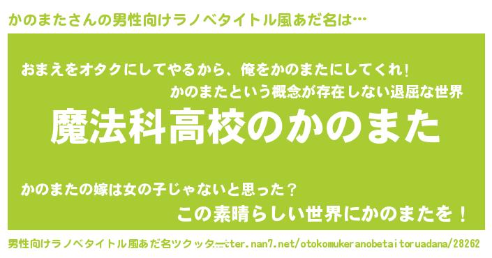 | 女子向けラノベタイトル風あだ名 | 『かのまたなんてお断りですっ。』 |