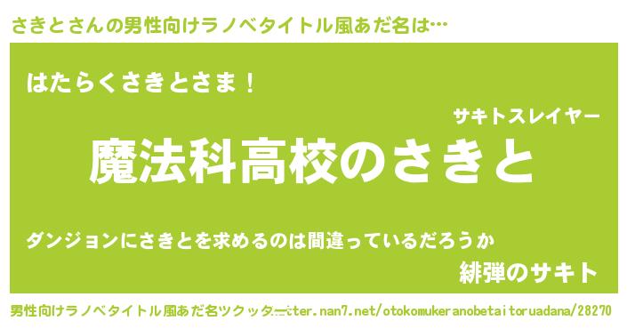 | ヒーロー風カッコイイあだ名 | 『ウルトラ戦士サキト』『魔戒騎士サキ』 |