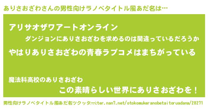 | ファンタジー風あだ名 | 『エターナルアリサオザワー』 |