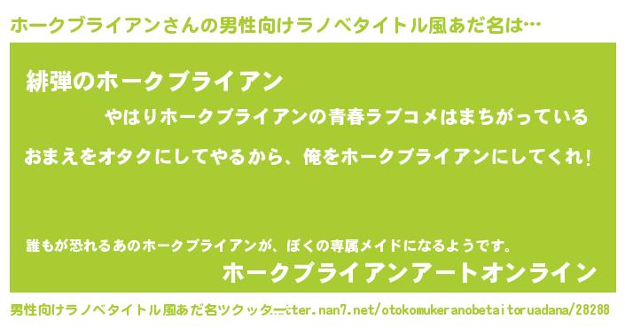 ホークブライアンさんの男性向けラノベタイトル風あだ名をツクッター!