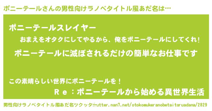 | ヒーロー風カッコイイあだ名 | 『究極戦士ポニーテール』『仮面ポニダー』 |