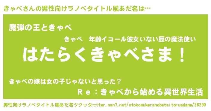 | 意味不明あだ名 | 『住所不定無職きゃべ(40歳)』『自称きゃべ』 |