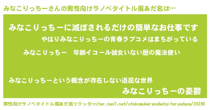 | 女子向けラノベタイトル風あだ名 | 『みなこりっちーの玉の輿計画!』 |