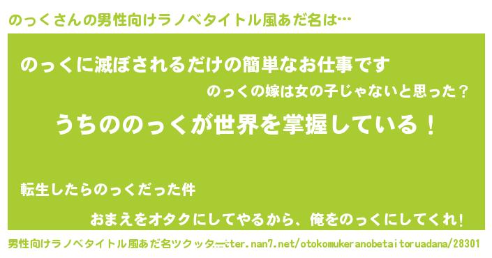 | ヘコむあだ名 | 『のっぷりん』『のっく(遠い目)』 |
